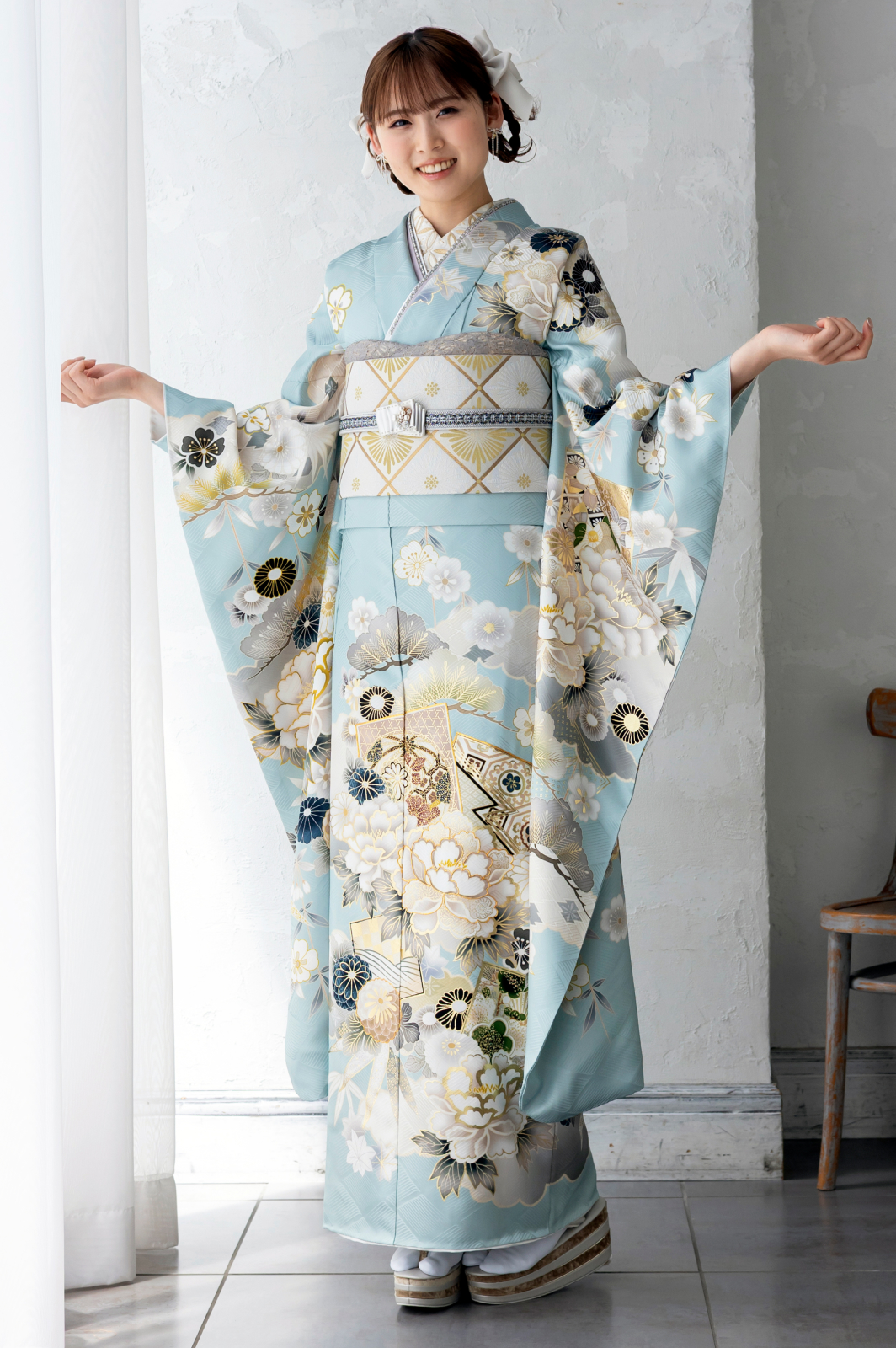 黒や茶などのダークカラーを選びがちですが、ベージュ系・オレンジ系・オリーブグリーン系などの色目もよく合います。着慣れない色も、振袖の柄や、小物の取り合わせしだいで肌になじむのが、着物の魅力でもあります。ぜひお好きな色を試してみてください。